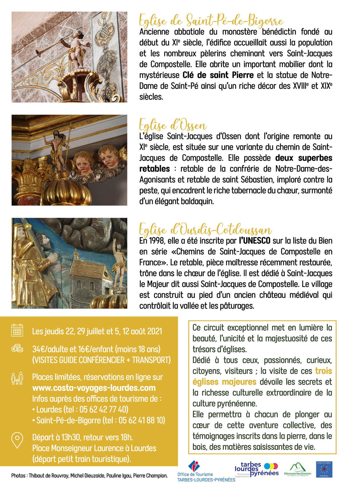 En partenariat avec l’Office de Tourisme communautaire de Saint-Pé de Bigorre (qui porte le projet tant sur la phase opérationnelle que financière), l'Office de Tourisme de Lourdes mais aussi les acteurs touristiques locaux : l'agence de voyages Découvertes Évasion, les transports Costa Voyage et l'association Guides culturels pyrénéens, ce circuit, regroupe trois des églises les plus intéressantes du territoire : Saint-Pé-de-Bigorre / Ossen / Cotdoussan.