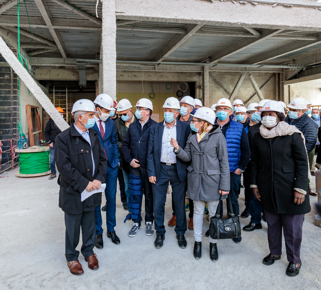 Gérard Trémège, Président de la Communauté d'agglomération Tarbes-Lourdes-Pyrénées, accompagné du Préfet des Hautes-Pyrénées, Rodrigue Furcy, des élus de l’agglomération et des architectes du projet, ont visité le chantier du futur bâtiment dédié au sport de notre territoire. Une halle sportive de 11 000m² dont le chantier a débuté en juin 2020 et finira en septembre 2021.